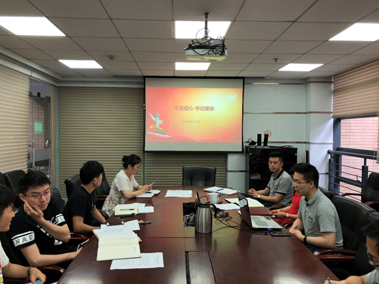 随后数字所研究生第一党支部的王斐同学做集体备课,内容是不忘初心、牢记使命、永攀高峰。王斐同学从浙江大学的历史沿革开始讲起,描述了一代又一代浙大人的初心和使命。在提到竺可桢老校长在西迁办学之路上遇到的困难,王书记也和支部书记们分享了竺老校长自己家人生病都没顾上的小故事,让人为之动容。