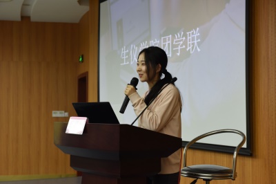 最后,生仪团学联副主席任舒婵学姐向同学们介绍了团学联,鼓励同学们加入生仪团学联来更好地认识专业、学院,认识更多志同道合的朋友们。