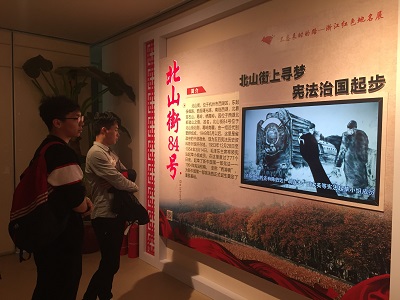 团员们首先参观了“浙江红色地名展”。南湖、小营巷、北山街84号、新安江、余村……沿着一个个熟悉的红色地名,团员们追忆曾经发生在浙江大地上可歌可泣、荡气回肠的红色故事,感受属于浙江人民独特的红色文化。