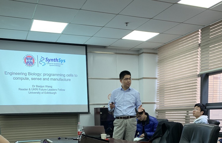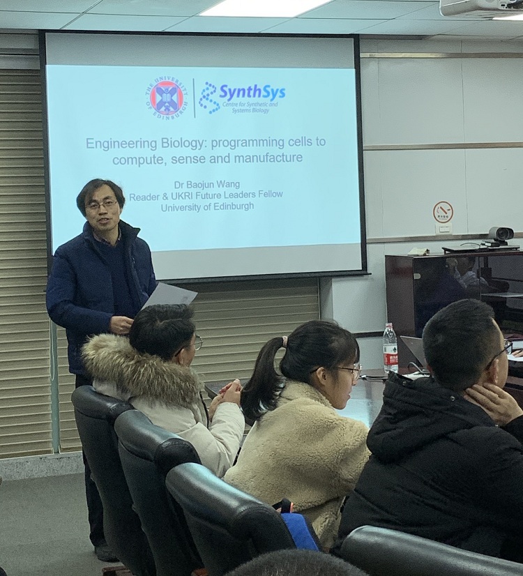 202012日上午,生仪学院在周亦卿科技大楼二楼会议室举办了第108期青年学术沙龙暨研究生科研能力提升系列活动,邀请了英国国家研究创新基金会学术领军人才基金获得者和爱丁堡大学合成生物学中心王宝俊教授主讲,主题为“Engineering Biology: programming cells to compute, sense and manufacture”,会议邀请人为生仪学院田良飞研究员。本次沙龙由生仪学院副院长刘清君教授主持,吸引了生仪学院40余为师生参加,现场座无虚席。