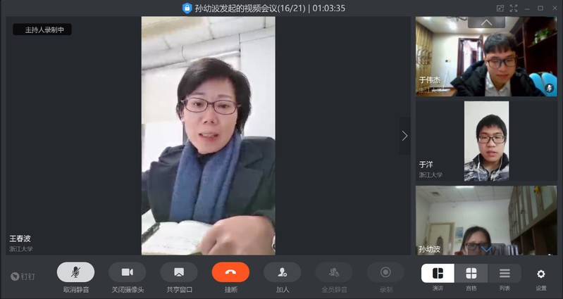 参加视频连线的学生代表中,有身居疫情重点区域仍积极参与网络学习、科研的;有即将毕业,正紧锣密鼓准备毕业设计的;还有担任兼职辅导员、网络课程技术助教等,同学们围绕“疫情防控期间,如何保证网上教学、科研等相关工作正常有序进行”积极发言。同学们分享了自己的寒假生活与学习情况,讲述了自己的志愿者经历,同时也结合自身情况向老师提出诸多问题,“实验课程返校之后如何开展?”“体育课的网课教育如何保证质量?”“如何进一步加强网课中的师生互动?”“科研所需软硬件资源如何获取?”“什么时候才能开学?”“三月份毕业答辩是否能准时进行?如何进行?”“学位授予是否会受影响,能否按时拿到双证?”“湖北地区学生是否能按时返校?”等,气氛热烈融洽。