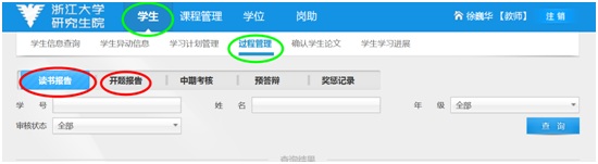 2、读书报告审核:研究生登录“研究生教育管理信息系统”进入“我的读书报告”,如实完整填写相关内容。仔细核对学院有关读书报告文件要求,录入相关信息,请导师先通过审核。