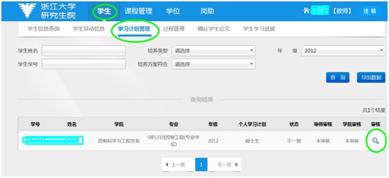 注:有关研究生导师审核操作,导师登录“研究生教育管理系统”,进入“学生”相关栏目,进行审核(请导师务必仔细审核学生材料,仔细审核,把好研究生培养质量第一关)。