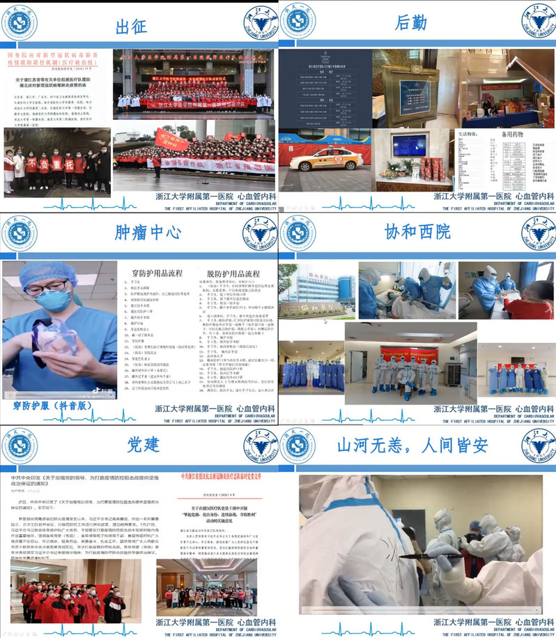 2020年4月12日下午,为致敬最美逆行者、向一线英雄学习,在浙江大学生仪学院党委组织下,附属第一医院心血管内科党支部与生物医学工程系教工党支部两支首批学校党建工作样板培育支部首次线上集结,邀请到浙江大学医学院附属第一医院的四位抗“疫”英雄,通过浙大钉直播的方式举办了一场附属第一医院心内科党支部总结会暨生仪学院“先锋学子”特别主题报告会,为广大党员带来了一场受益匪浅的党课。