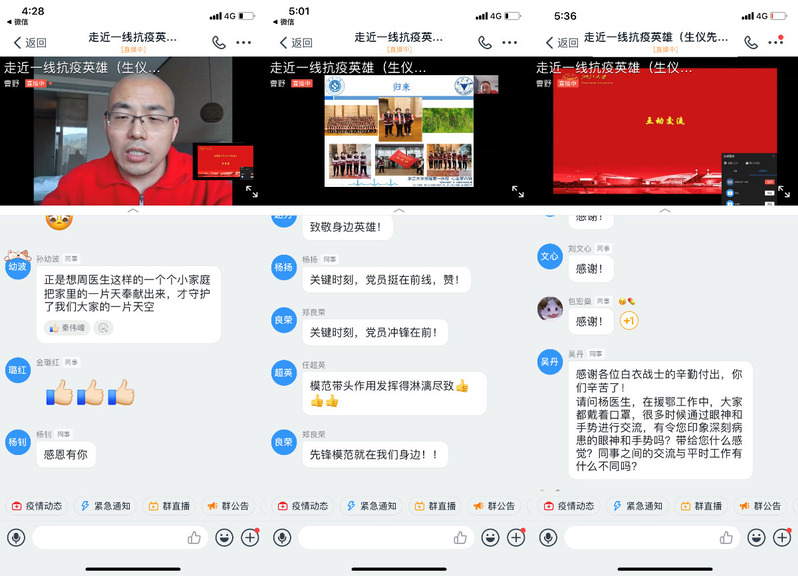 “这是一堂具有特殊意义的党课,给了我们与最前线的医护工作者们交流的机会。我深深感受到了医护工作者的家国情怀和抗击疫情的艰辛不易。我们要以他们为榜样,勇担时代使命,不负厚望、奋发进取,用自己的方式为祖国作出贡献!”