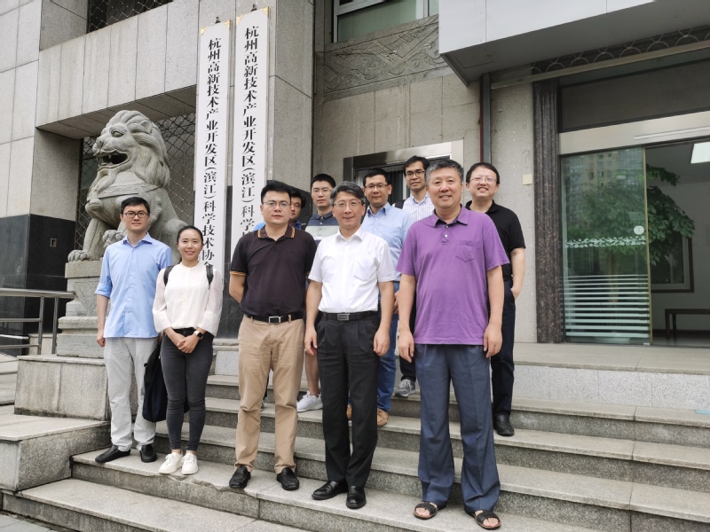 2020年8月28日上午,浙江大学生物医学工程与仪器科学学院(生仪学院)张宏院长一行9人专程访问了滨江区科技局,就加快建设浙江大学滨江研究院智能医疗技术与装备研究中心事宜,开展了深入的交流研讨。参加此次交流的有浙江大学高分子科学与工程学系主任高长有教授、生仪学院医疗健康信息工程技术研究所副所长吕旭东教授、院长助理许迎科教授及各个团队的核心骨干成员等。滨江区科技局局长柴志东、副局长俞凯华等同志全程参与讨论。