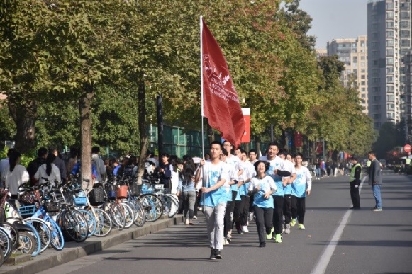 生仪学院党委副书记杨扬老师、团委书记孙幼波老师领跑学院队伍。生仪学子们跟随老师,高举院旗,从东操开始,经过安中大楼,途经医学院,再经过校医院后回到紫云篮球场。作为生仪学院的代表,他们是生仪的骄傲,他们的身影是阳光长跑活动中的一抹亮色。