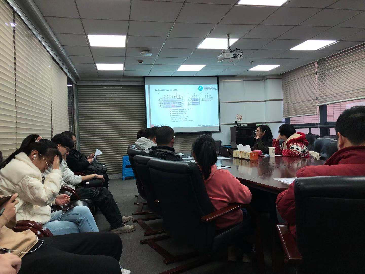接着,韩昊特同学向我们介绍了自己团队所作的诸多工作,包括CRISPR基因编辑技术、PI3Kd在增殖性玻璃体视网膜病变形成过程中的作用等。同学们也认真投入在了韩昊特同学所讲述的内容中。
