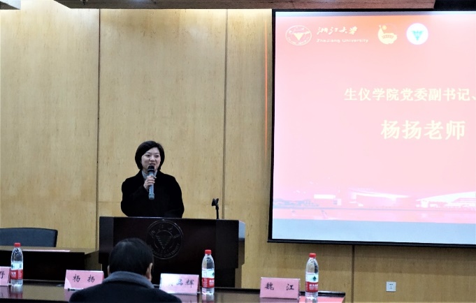 生仪学院党委副书记、青马学院院长杨扬老师总结了青马学院二期学员们的过去一年的学习、工作,并为二期结业学员们送上她诚挚的祝福。对于即将进行为期一年的青马培训的三期学员们,杨扬老师提出三点期望:她强调,青马骨干培养对象是学生群体中的骨干部分,一定要主动提高政治能力、增强调查研究的能力、提高工作落实能力,努力成为学生群体的模范生、有为者和可靠人,最终成长为政治坚定、德才兼备、心怀天下、堪当重任、扎根奉献的青年马克思主义者。