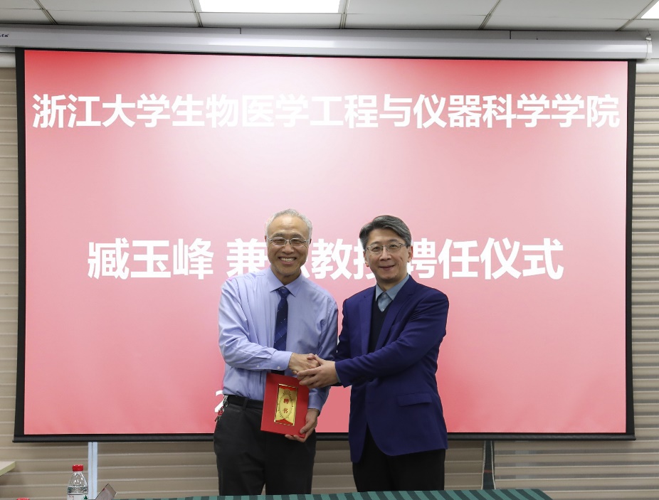 在报告开始前,张宏院长代表学院向臧玉峰教授的合作指导表示了欢迎,并颁发了兼职教授的聘书。