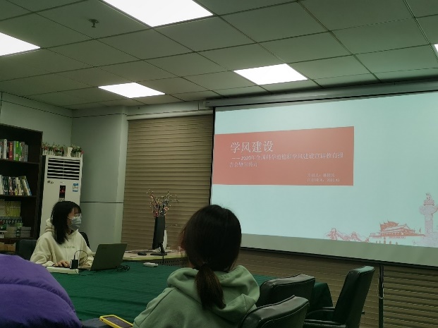 接着,林银燕同志进行了学风建设——2020年全国科学道德和学风建设宣讲教育报告会暨宣传月分享。分享中介绍了于11月20日在北京举办的2020年全国科学道德和学风建设宣讲教育报告会暨宣传月启动仪式。在宣传月中有一些科研学者提出了他们关于科学研究需要的精神和品质,如中国科学院院士、青藏高原研究所名誉所长姚檀栋提出的“长期的坚持,耐得住寂寞”。有了科学问题,真正要解决这个问题,不是一天两天的事,甚至不是一年两年的事,可能是很长时间的事,这就需要有长期的坚持,耐得住寂寞。这一点对我们研究生,不论是党员还是群众,在科研前进道路中都是至关重要的品质和坚守。中国环境科学研究院研究员霍守亮提出要“想国家之所想,急国家之所急”。这一观点站在了一个更高的奉献精神和集体精神的高度,在现在的条件下,青年科研者就应该更担当,为现代化建设贡献一份力量。