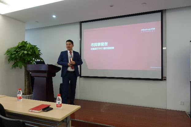 接着,迈瑞华东地区人力资源总监石女士和毕业于浙江大学生仪学院的吴志海学长也分别分享了各自在迈瑞的成长经历。吴志海学长从自身经历出发,重点介绍了其作为一名技术支持工程师的工作内容与生活经历,鼓励学弟学妹在校期间积极思考自己的职业规划,用自己的专业知识承担更具挑战的使命。