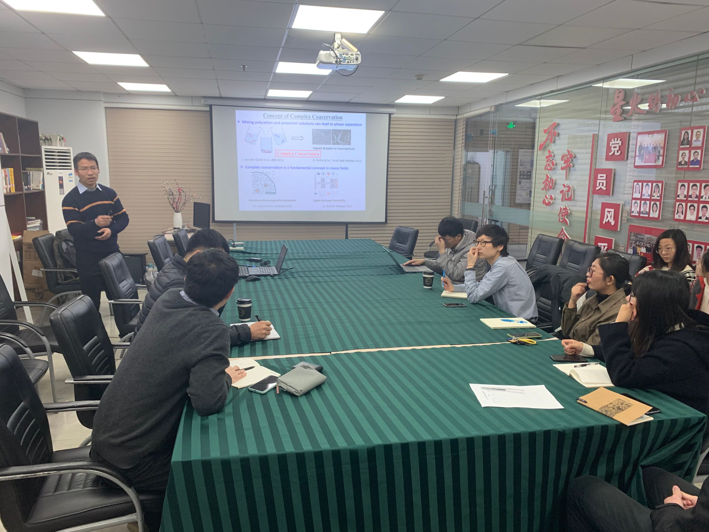 在本次学术沙龙中,张朋飞研究为我们讲述了有关采用高分子理论和计算机模拟等研究聚电解质溶液、聚电解质刷和受限聚合物溶液等多种高分子体系的构象,热力学和相行为。期间张朋飞研究员与青年教师和同学们针对相关问题进行了热烈的讨论,讲座也在热烈的掌声中圆满结束。