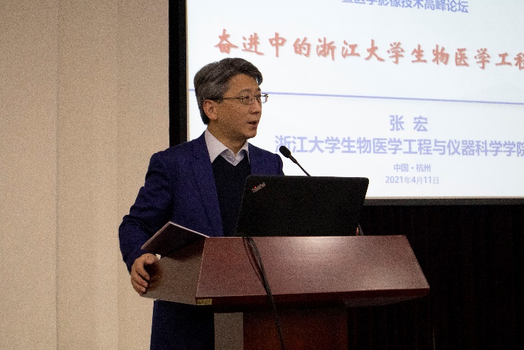 ,张宏教授以“创新指引迈向前列的发展“为题,介绍了浙江大学生物医学工程学科的创办历程和辉煌成绩,并对未来的发展进行了展望。核医学技术作为医学影像最重要的技术之一,其分子影像技术极大推动医疗实践,张宏教授对核医学分子影像的原理和浙江大学核医学影像中心的研究成果在现阶段临床诊断、治疗和预测上进行了全面的介绍。