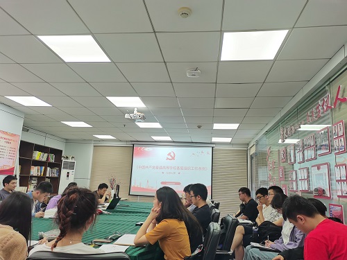 会议进行第一项,孙幼波老师带领各位党员同志们进行了关于《习近平新时代中国特色社会主义思想学习问答》一书的学习讨论分享,这本书紧跟实践发展步伐,聚焦理论热点难点,回应干部群众关切,以问答体的形式全面系统展现了习近平新时代中国特色社会主义思想的重大意义、科学体系、丰富内涵和实践要求。大家通过学习都收获了很多,并且对书中各个章节提出了自己的理解,对党的理论知识学习更加深化,对党的思想、路线、方针、政策有了更深刻的认识。孙幼波老师向党员同志们介绍了《中国共产党普通高等学校基层组织工作条例》,明确了党支部在高校中的职责。孙幼波老师鼓励同志们要加强理论学习,学以致用。