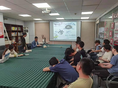 之后,团支书石嘉豪同学带领同学们进行了学风建设讨论,着重分析了大四以来同学们的学习生活作风问题。由于疫情的影响,大四以来学习压力也有所减轻,同学们在学习生活上都有所懈怠。针对这种情况,会议讨论列举了其弊端,并提出改变这种状态的必要性与迫切性。即使大学本科生活已经接近尾声,也不能就这样松懈。