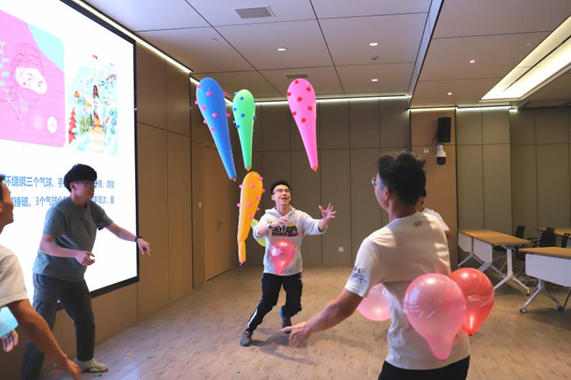 紧接着是游戏环节,同学们在“气球大战”中展现了矫健的身姿;在“木头人”游戏展现了灵活与敏捷,当然,各位同学“百米冲刺”的能力也不容小觑;在“兔子舞”时,大家围成圈跳起舞,陌生逐渐被熟络代替,欢声笑语,亲密无间。