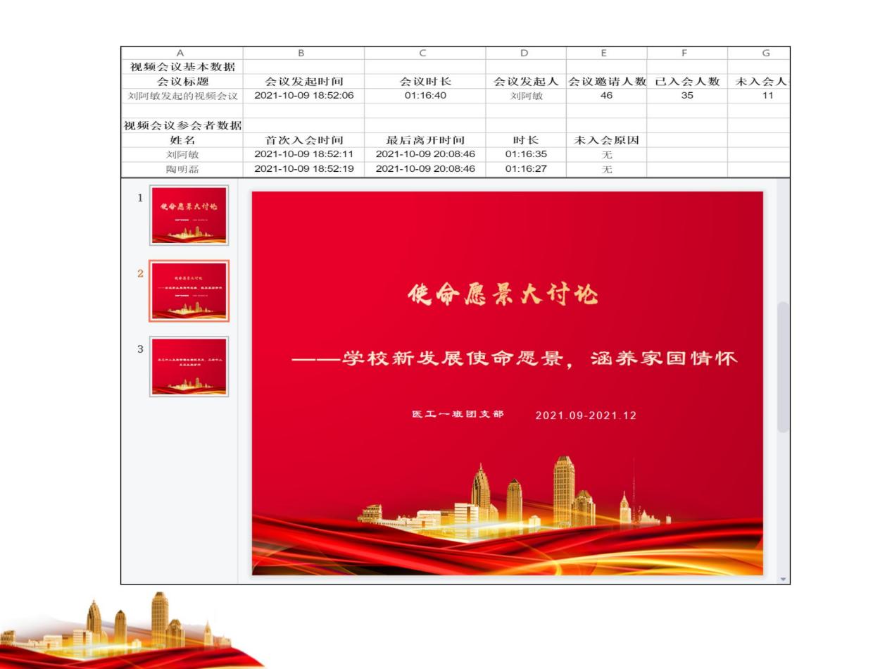 探讨未来发展愿景,更不应忘记现在幸福生活的来之不易。生医一班、数字二班与医工二班团支部以“建党百年”作为讨论主题。从学习百年党史开始,重点解读习近平总书记对广大青年的寄语和对全体中国共产党员的号召,深入学习习近平总书记“七一”重要讲话精神。广大团员青年的爱国热情与青年精神形成共鸣,表示要严格践行总书记的指示,以伟大建党精神为指引,成长为能够担当中华民族伟大复兴大任的新时代中国青年。