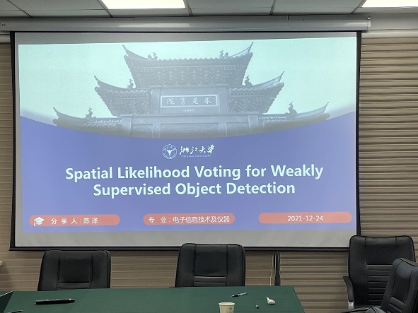 使用弱监督信息训练目标检测算法是目标检测领域中一个重要的研究方向。为提升弱监督目标检测算法的定位准确性,陈泽博士提出了一种空间似然投票算法,利用弱监督目标检测网络输出的候选区域的分类信息和空间位置信息,在线计算空间似然图。生成的空间似然图中的高响应区域的位置作为更加精细化的监督信息,对候选区域进行重分类和重定位的训练。在空间似然投票算法的基础上,陈泽博士还提出了一种自适应搜索算法和一个自知识蒸馏模块。自适应搜索算法被应用于空间似然投票算法产生的空间似然图,基于其统计信息和似然值的特征分布情况,从中逐一搜索潜在的物体,获取更加精确的物体位置信息,有利于提升算法的性能。自知识蒸馏模块用于提升算法网络的特征提取效果,增强非显著物体及显著物体的非显著区域的特征表达,来缓解多示例学习网络倾向于只关注显著物体的显著区域的问题。在不同目标检测数据集上进行的大量实验结果表明,所提出的空间似然投票算法与自知识精馏网络显著提高了弱监督目标检测算法的性能。