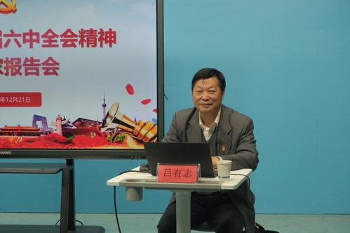 会上,吕有志老师分别从深刻认识总结党的百年奋斗中的成就和历史经验的重大意义、深刻认识党的百年奋斗的初心使命和重大成就、深刻认识中国特色社会主义新时代的历史性成就和历史性变革、深刻认识党的百年奋斗的历史意义和历史经验、深刻认识以史为鉴开创未来的重要要求等五个方面,深入浅出解读了党的十九届六中全会《决议》精神,并引出了在新时代如何坚持和发展中国特色社会主义的思考。