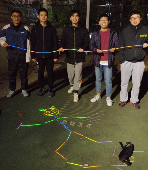 荧光夜跑活动时间为11月22日至12月19日每晚19:30到21:30,共有四十余名同学报名参加活动,组成了9个夜跑小组。参加的同学使用运动APP记录夜跑记录,最后根据记录和团队积分,给予相应奖励。