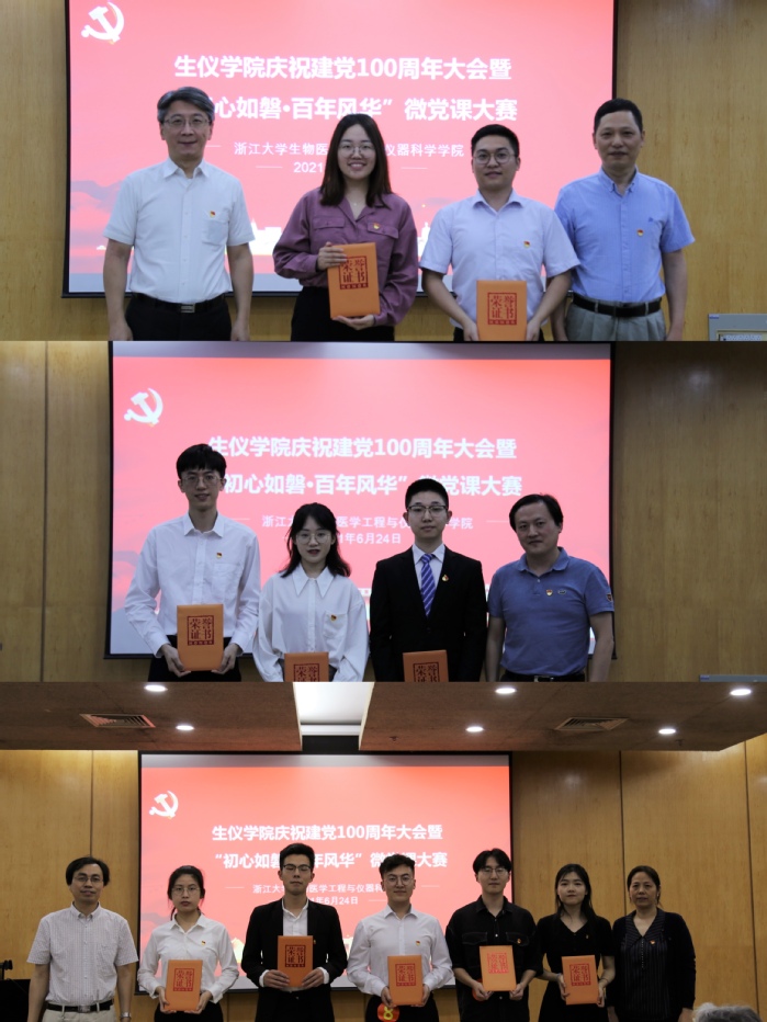 回顾百年历程、追忆峥嵘岁月。为庆祝中国共产党成立100周年,教育引导广大师生知党爱党,不忘初心,牢记使命,生物医学工程与仪器科学学院于6月24日隆重举行庆祝建党100周年大会暨“初心如磐·百年风华”微党课大赛。浙江大学党史学习教育第五巡回指导组组长吕国华老师、党委教师工作部副部长徐洁老师、党委学生工作部副部长金芳芳老师、党委研究生工作部副部长张晓洁老师,学院党委委员,党支部书记,党员代表及2021年发展新党员等参加会议,百余位师生党员观看线上同步直播。会议由学院党委副书记杨扬主持。