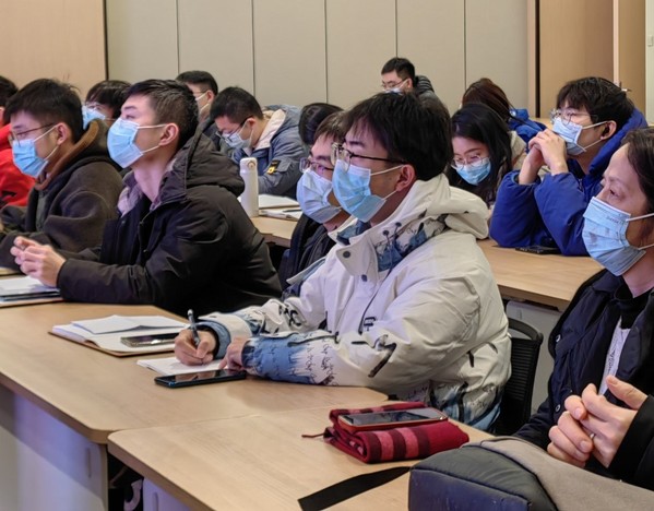 在传授知识的同时,张宏院长也结合当下疫情防控的形势向同志们介绍了学校、学院的相关部署和安排,激励同志们要积极响应组织号召,发挥党员的先锋带头作用,在党和人民需要我们的关键时刻应该挺身而出。张宏院长指出,同学们是学院最重要的服务对象,欢迎同学们向学院提出需求,学院会尽最大努力满足同学们的合理需要。同时,党员同志也应该在日常生活中主动关心身边的同学,从小事做起,帮助有困难的同学解决问题,发挥“主人翁”精神。