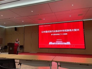 吴丹老师作为学院党的二十大精神宣讲团成员向支部系统解读党的二十大精神,她从党的二十大报告的五大特点和学习贯彻会议精神的五大要求入手,领会中国式现代化的内涵和战略安排,把握中国式现代化的重点,号召大家坚决扛起党和国家赋予高水平大学的战略使命,切实做好党的二十大精神的宣传贯彻落实工作,为中华民族伟大复兴贡献浙大力量。