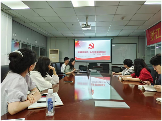 随后,各位党员同志开展了《习近平新时代中国特色社会主义思想专题摘编》读书分享会,通过“读原著、学原文、悟原理”党课学习,支部成员更深入理解了习近平新时代中国特色社会主义思想的深刻内涵,也能更好地把握数字经济的发展趋势和机遇。这不仅有助于学生党员在思想上保持与时俱进,而且也可以在实践中更好地服务于经济社会发展和国家现代化建设。