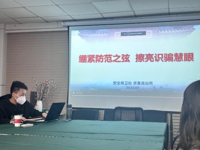 在会议的第三部分,支部书记郑晟同志为大家播放了网络反诈宣传视频,通过真实案例向党员们普及了电信网络诈骗的常见手段和防范方法,提醒支部党员大家提高警惕,增强防范意识。