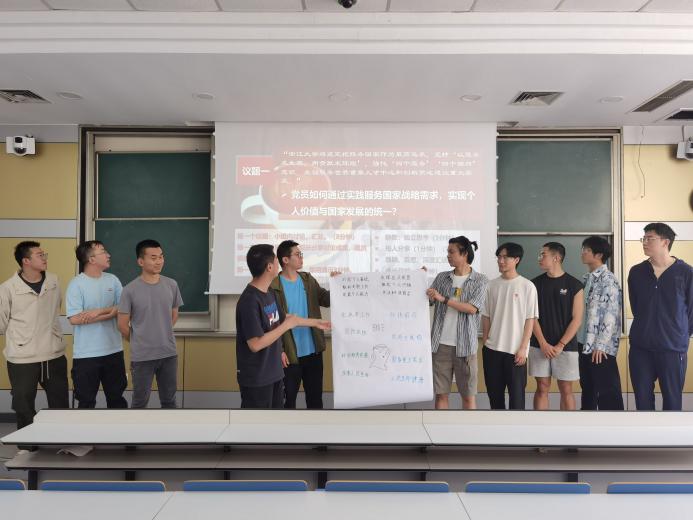在汇总展示环节,各组同学以条理清晰、逻辑缜密的陈述,结合自己的体会和经验,或以数据和事实为支撑,或用生动的图表和案例,深入分析了党员在不同领域的先锋模范作用,以故事叙述个人成长与国家发展紧密结合的青年一代的政治追求和责任担当,提出了一系列在新时代将求是精神发扬光大切实可行的实践方案,展现出他们对问题解决的深入思考。