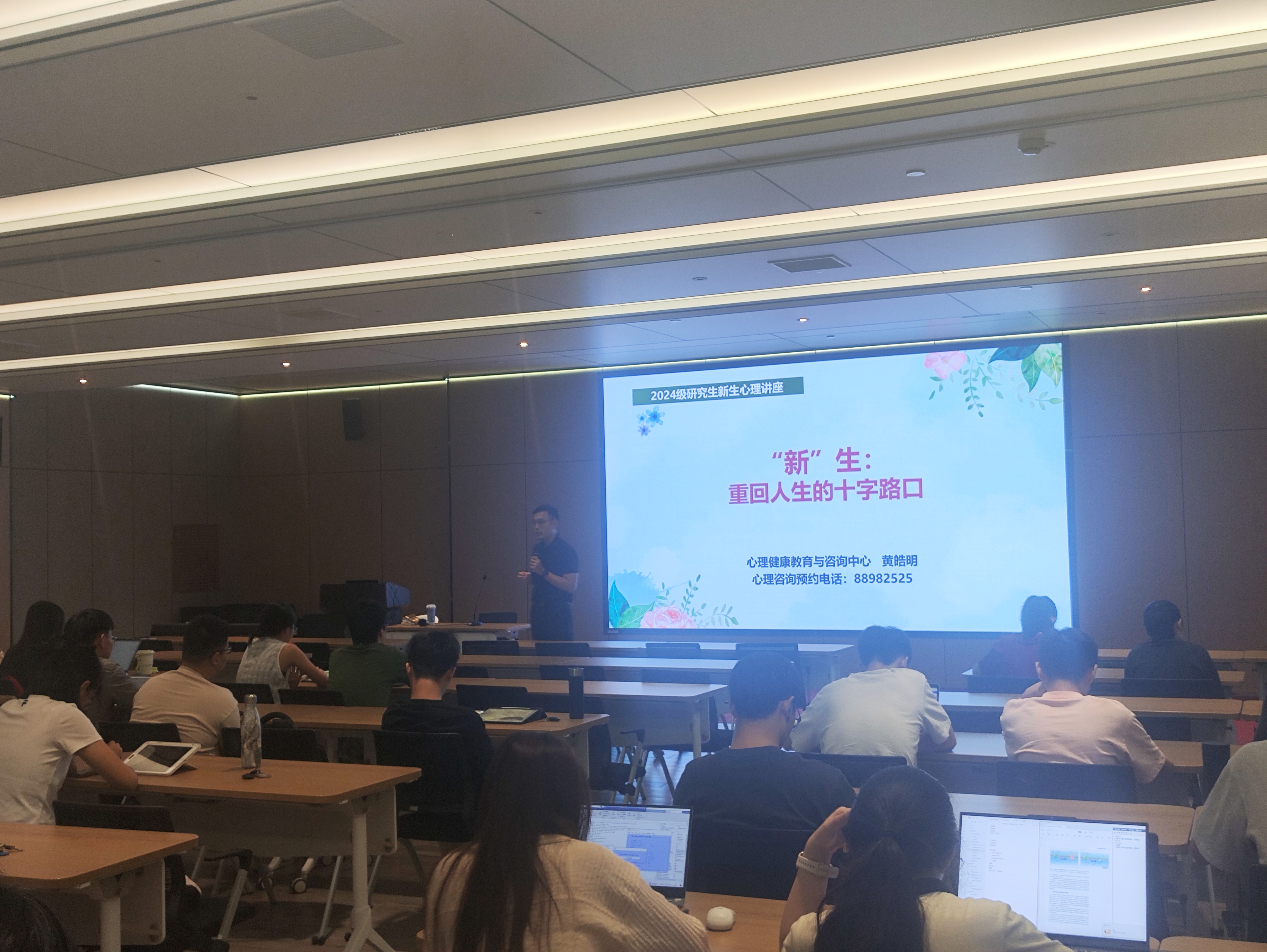 心理咨询中心的黄皓明老师,详细介绍了研究生在学术压力、人际关系和未来规划等方面可能遇到的心理挑战,强调了心理健康对于个人成长和学术成就的重要性,并提供了有效的心理调试策略和压力管理技巧。黄老师特别探讨了如何在研究生阶段建立和维护积极的人际关系,包括与导师、同学和实验室同伴的相处之道,鼓励同学们进行开放的沟通,培养团队合作精神,以及学会在冲突中寻求解决方案。导学关系是研究生教育的核心,他建议同学们主动与导师沟通学术兴趣和研究计划,同时也要尊重导师的指导和建议,还就如何在忙碌的学术生活中保持社交活动、以及如何与导师建立互信等问题提供了宝贵建议。
