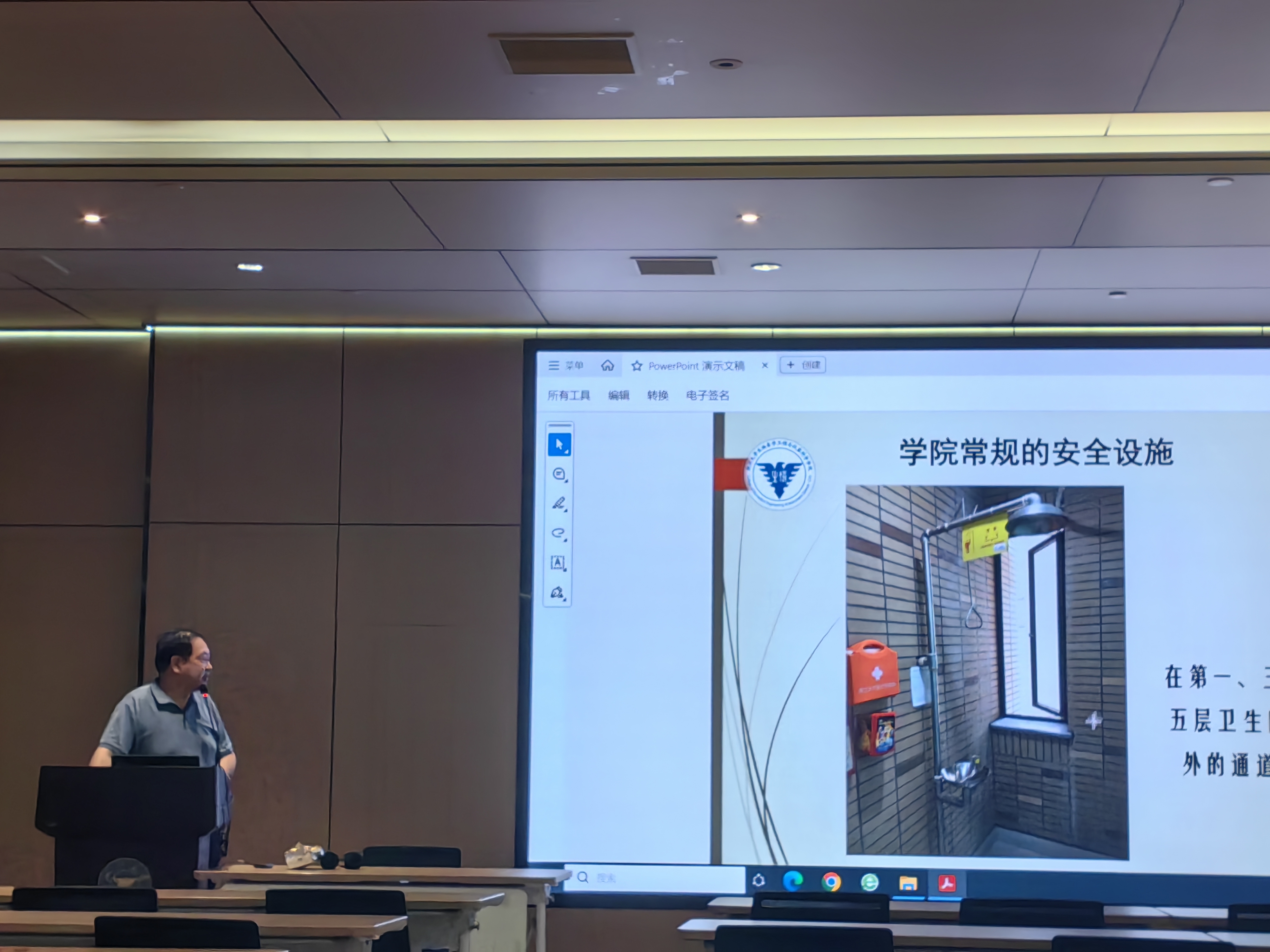学院实验室沈义民老师为同学们详细介绍了实验室安全的基本规范和操作流程。沈老师结合自己多年的实验室管理经验,强调了遵守实验室规章制度的重要性,并详细解读了实验室安全操作规程,包括化学品的储存与使用、生物材料的处理、电气安全、紧急事故的预防与应对等。沈老师通过分析近年来实验室安全事故案例,指出了研究生在科研过程中可能忽视的安全细节,强调了个人防护设备确使用,如实验服、防护眼镜、手套等,指导同学们如何在紧急情况下进行自救和互救,同时,他还讲解了化学品泄漏、火灾等紧急情况下的应急处理流程,包括如何使用实验室配备的消防器材和紧急淋浴设备。最后鼓励同学们在科研实验中始终保持警惕,将安全意识贯穿于实验的每一个环节。