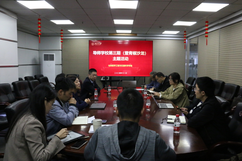 11月15日,生仪学院导师学校(第三期)暨青椒沙龙主题活动在周亦卿科技大楼二楼会议室顺利举办。本次活动特别邀请了浙江大学一院精神卫生科的胡少华主任,为德育导师、班主任以及青年教师带来了一场关于导学关系处理的精彩分享。生仪学院党委副书记杨扬、党委研工部思政办主任朱杭老师出席活动,与大家共同探讨导学关系中的挑战与机遇。