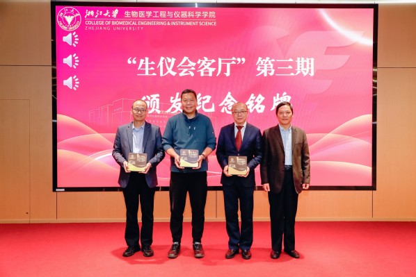 项品辉书记为三位嘉宾颁发“生仪会客厅”纪念铭牌。