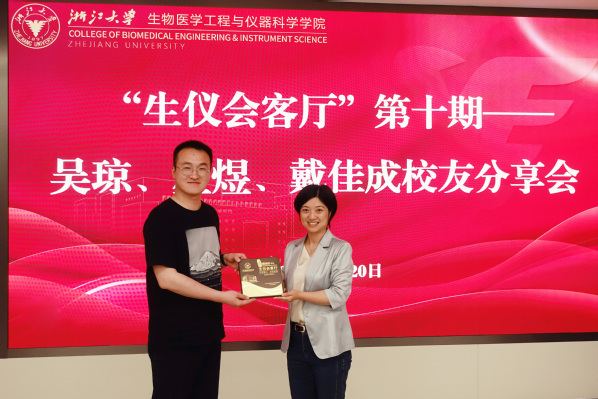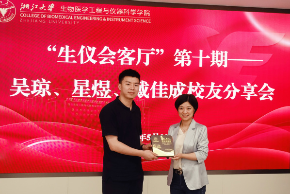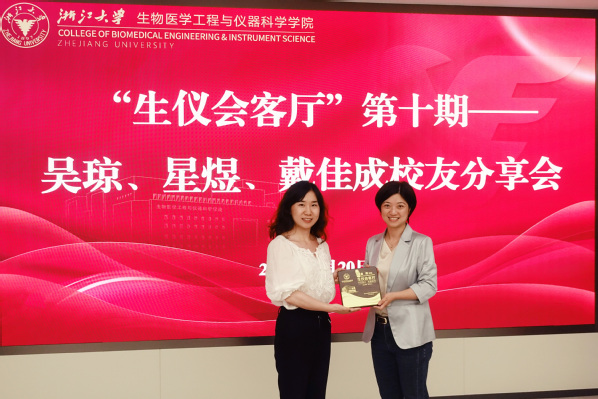 2025年5月20日晚,浙江大学生仪学院第十期“生仪会客厅”活动在玉泉校区第六教学大楼122报告厅顺利举行。本次活动以“从实验室到基层——选调生的跨界对话”为主题,邀请到三位优秀选调生校友吴琼、星煜、戴佳成分享基层工作经历与感悟。学院党委副书记、纪委书记杨扬,团委书记曹野,发展联络专员杨丹及学生代表四十余人参与活动。