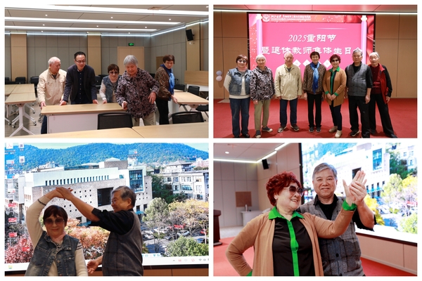 2025年10月31日,生仪学院精心组织重阳节暨退休老师集体生日会活动,30多位退休老师欢聚一堂,在细雨与桂香中共度温馨时光。