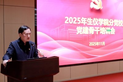 2025年11月7日下午,生仪学院2025年分党校党建骨干培训会在周亦卿大楼一楼报告厅举行。生仪学院党委书记、分党校校长周泓,校党委组织部副部长、党校副校长夏雷,计算机科学与技术学院CAD硕士生第一党支部学生书记朱雨珂,学院党委委员和全体师生党建骨干70余人参会。会议由学院党委副书记陈辰星主持。