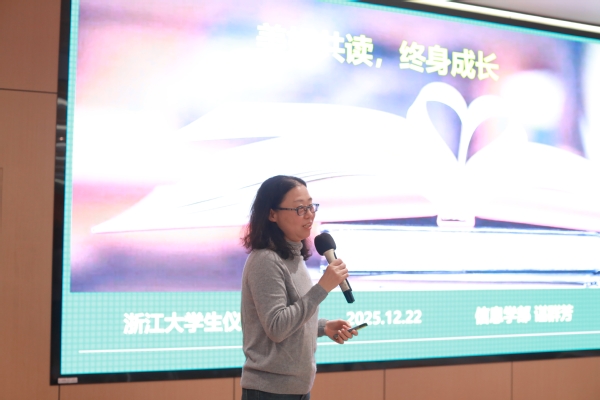 2025年12月22日,浙江大学生仪学院青年教师联谊会暨《家庭共读妙趣多》作者谌群芳老师专题分享会在周亦卿楼一楼报告厅顺利举行。学院三十余位教师代表齐聚一堂,共探家庭共读的教育智慧。