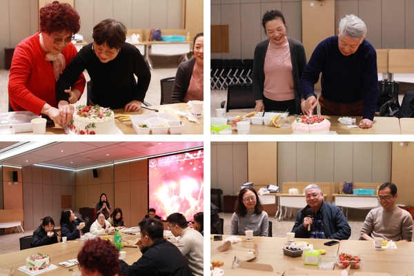随着生日歌悠扬响起,离退休老教师们与学院领导、寿星代表一同携手切分生日蛋糕。掌声与欢呼声交织,定格下新老同心、薪火相传的温馨画面。现场还精心准备了暖心茶点,老师们围坐畅谈,在轻松愉快的氛围中交流互动,传递着家人般的温情。
