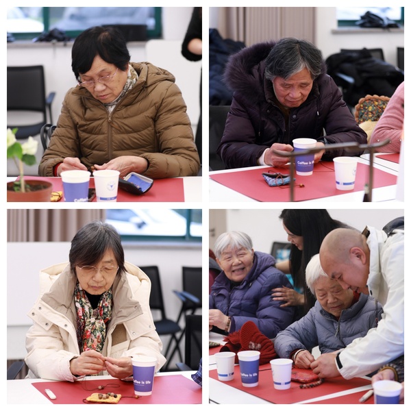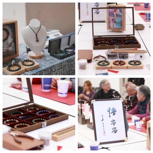 老教师们戴上老花镜,或低头专注挑选香珠,或轻声交流穿串技巧,指尖翻飞间,一颗颗承载着古方韵味的香珠逐渐串成精致手串。大家互相展示着亲手完成的作品,腕间馨香萦绕,脸上满是孩童般的喜悦与满满的成就感。有老教师笑着说:“闻着这香,浑身舒坦,再动动手、动动脑,和老朋友们唠唠嗑,太开心了!”